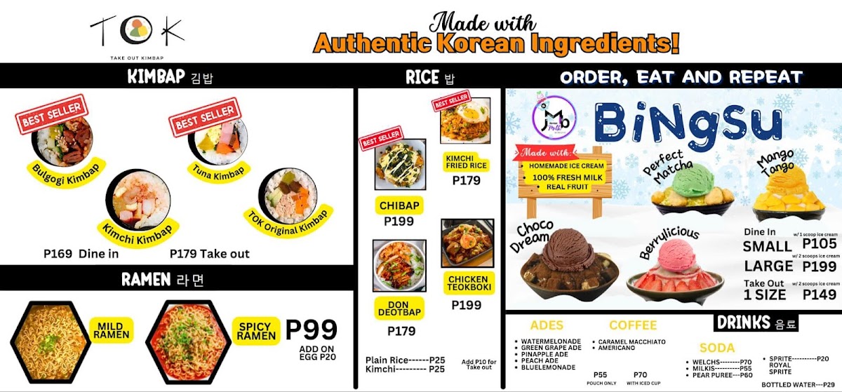 Take Out Kimbap (TOK) Menu